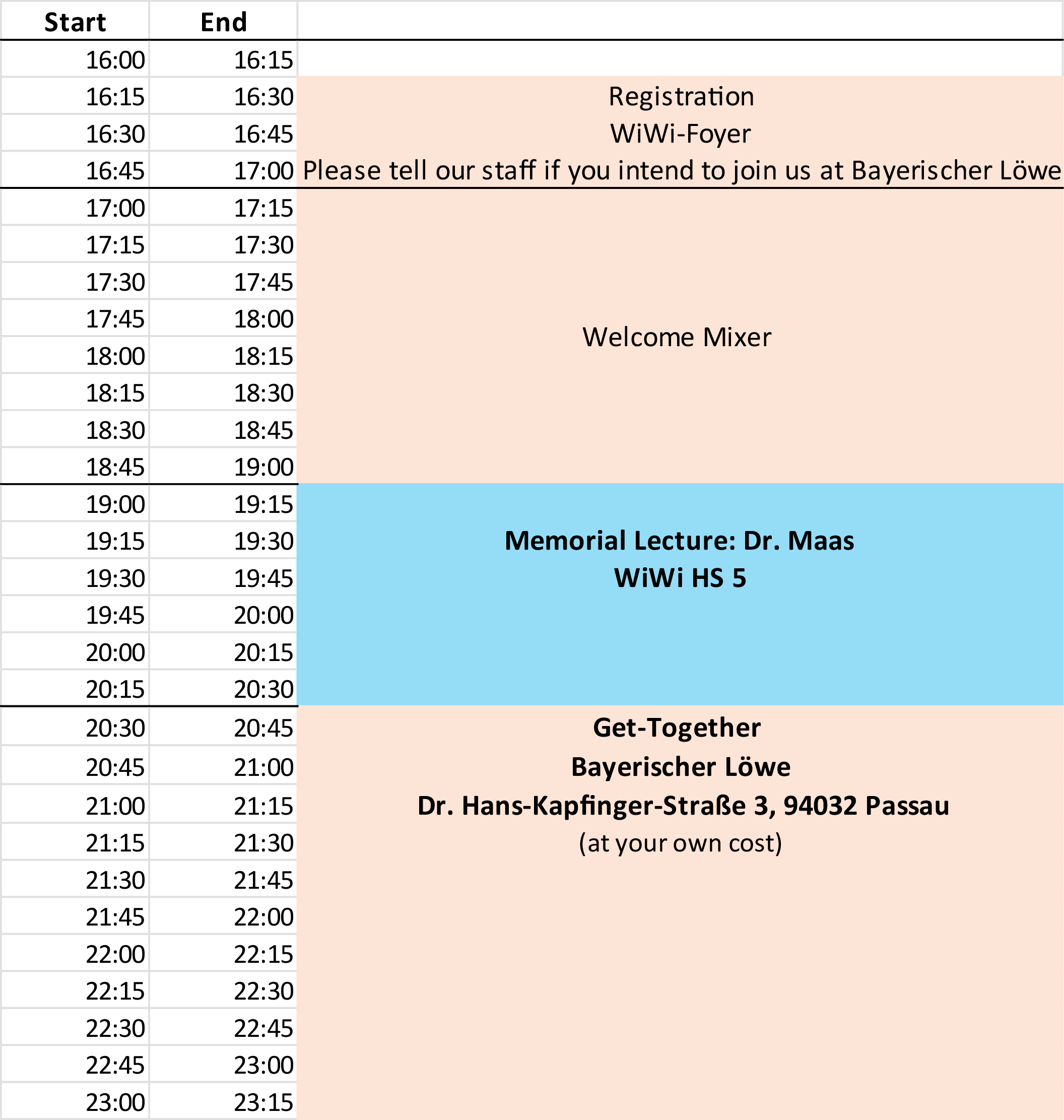conference schedule